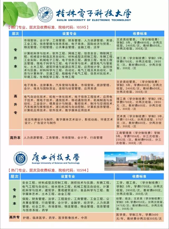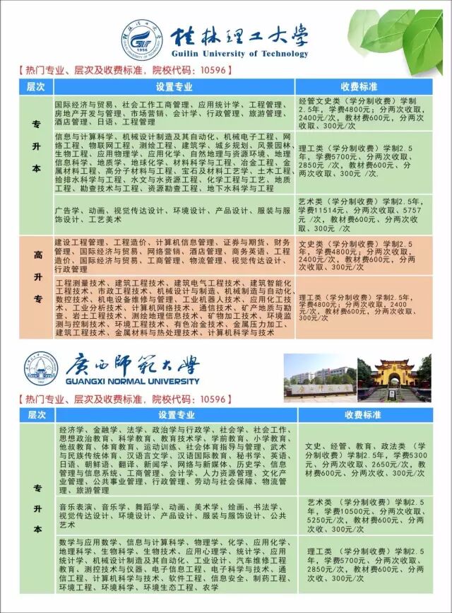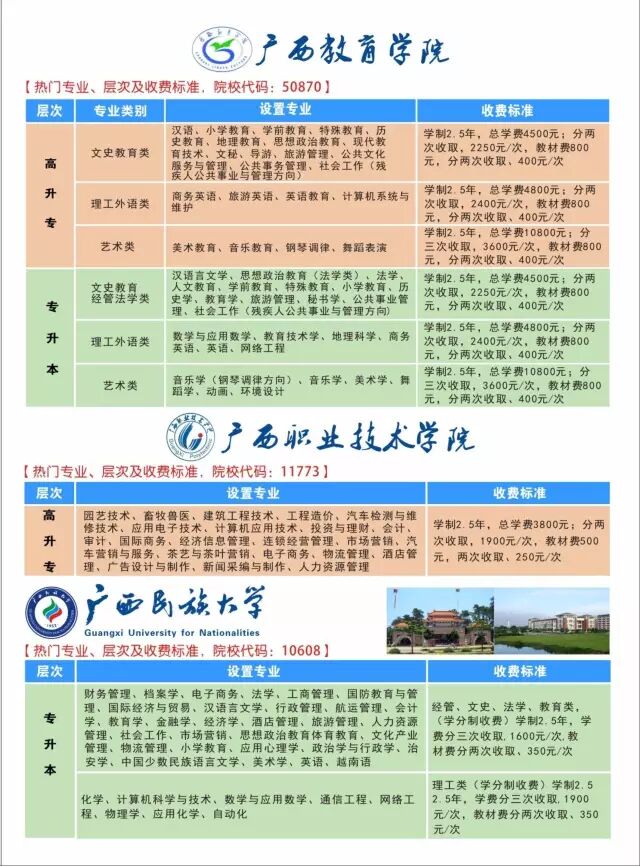 招生学校、学习专业、收费标准如下